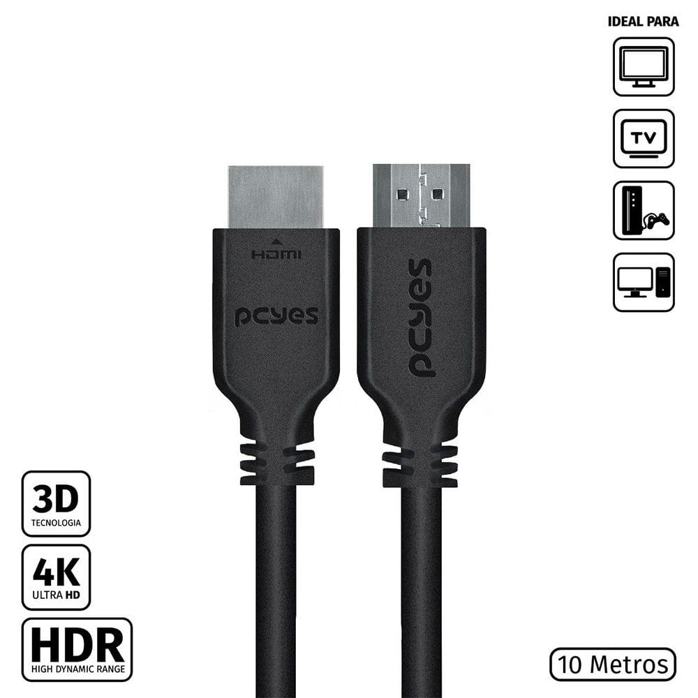 Cabo PCYES HDMI 2.0 High Speed 2.0, 4K, 30AWG, Puro Cobre, 10 Metros - PHM20-10 (29310) |