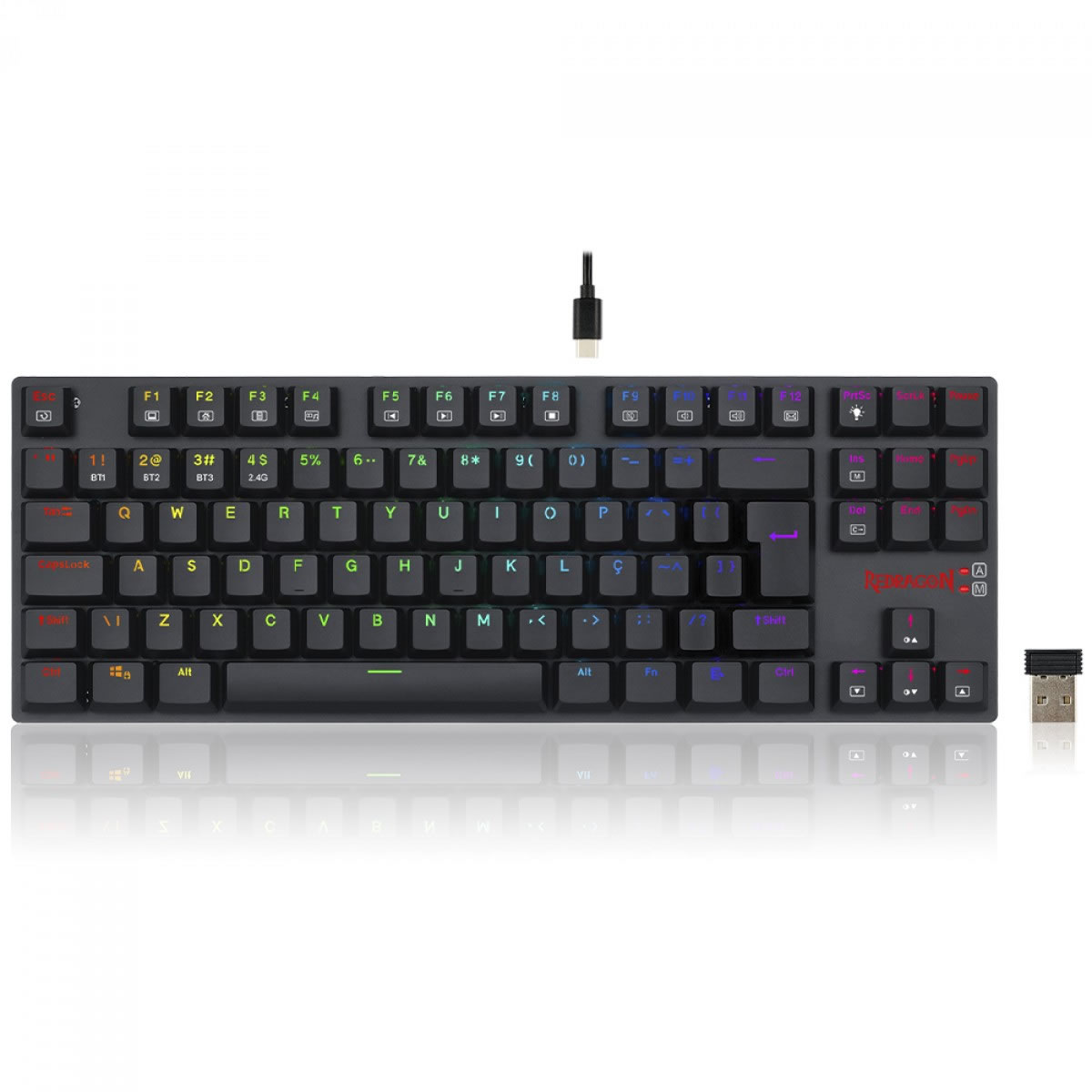 Teclado Mecânico Gamer Redragon Kumara Pro, Wireless e Bluetooth, RGB, Switch Brown, ABNT2, Black - K552RGB-BRS-B