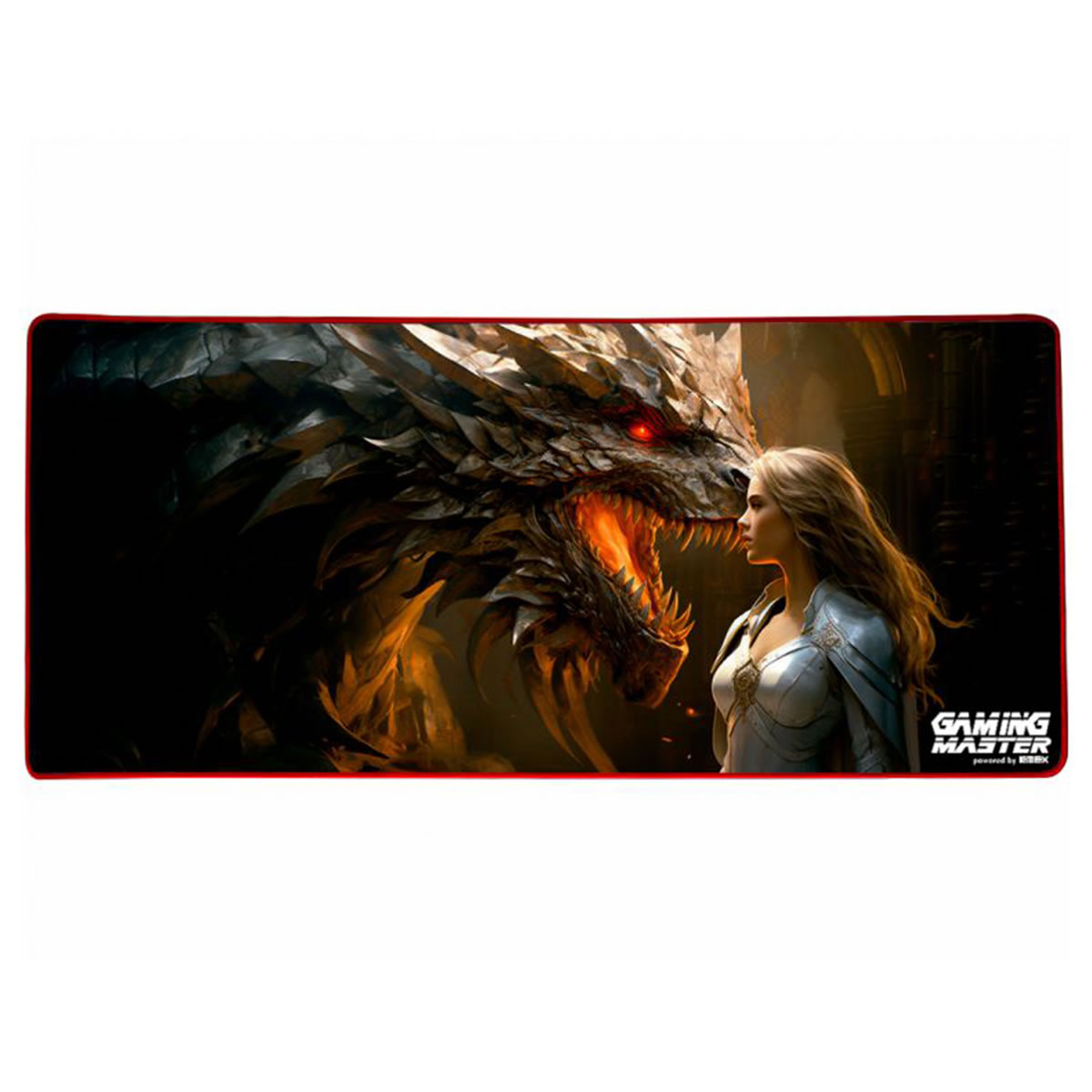 Especificações: - Cor: preto com estampa Dragon Queen - Tamanho: grande - Base em borracha antiderrapante - Superfície em multispandex estampada por transferência térmica - Bordas costuradas (lock edge) em vermelho - Formato extra grande para acomodar teclado e mouse. - Superfície otimizada para sensores ópticos, garantindo precisão. - Base emborrachada que mantém o mouse pad firme em qualquer superfície. - Durabilidade reforçada com bordas costuradas. - Design exclusivo Dragon Queen para setups gamers de alto impacto visual.